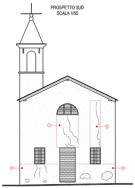 Per quanto riguarda il ripristino delle facciata interne ed esterne si è proceduto innanzitutto con la rimozione meccanica di tutte le porzioni di malta cementizia risultanti dagli interventi realizzati addietro, col lavaggio con acqua a bassa pressione e temperatura delle pareti ed in seconda fase col ripristino dell'intonaco esistente mediante l'utilizza di malte a calce naturale. Nello specifico caso sono state utilizzate le malte della linea biocalce della KERAKOLL ed in particolare biocalce rinzaffo per il ripristino a spessore delle crepe e delle insenature di maggiore profondità e biocalce intonachino per livellare e uniformare le pareti interne ed esterne, applicate con due diverse granulometrie degli inerti. Le pareti ed i soffitti interni, così come la facciata principale, sono state successivamente tinteggiate con apposite pitture a base calce ed il colore scelto per le stesse è il risultato dell'indagine stratigrafica eseguita precedentemente. I serramenti inoltre sono stati sostituiti con altri realizzati appositamente e aventi aspetto maggiormente indicato rispetto alla destinazione d'uso dell'immobile.